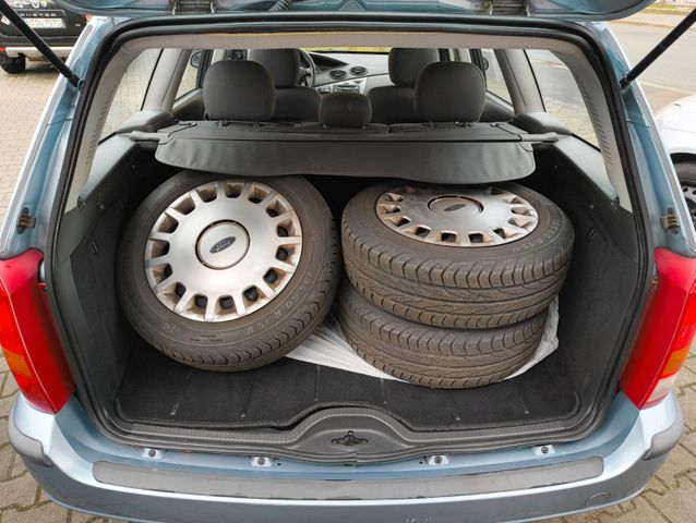 Entdecken Sie diesen gepflegten Ford Focus Kombi aus dem Jahr 2004 mit nur einem Vorbesitzer. Der Benziner mit 1,8-Liter-Motor (116 PS) bietet zuverlässige Leistung bei wirtschaftlichem Verbrauch. Mit seiner Frontantrieb-Konfiguration und dem manuellen Schaltgetriebe verspricht er ein angenehmes Fahrerlebnis. Der Innenraum in schwarzem Stoff ist praktisch gestaltet und bietet Platz für fünf Personen. Die manuelle Klimaanlage sorgt für angenehme Temperaturen zu jeder Jahreszeit. - Dieser Focus überzeugt durch seine solide Ausstattung mit elektrischen Fensterhebern, elektrisch verstellbaren Außenspiegeln und Zentralverriegelung. Die beheizbare Frontscheibe ist besonders in den Wintermonaten ein praktisches Extra. Der Wagen verfügt über Sommer- und Winterreifen, was Ihnen zusätzliche Flexibilität bietet. Mit der grünen Umweltplakette (Euro 4) haben Sie freie Fahrt in Umweltzonen. - Gepflegter Ford Focus Kombi mit nur einem Vorbesitzer, 1,8-Liter-Benzinmotor mit 116 PS, Manuelle Klimaanlage für angenehmes Raumklima, Elektrische Fensterheber und elektrisch verstellbare Außenspiegel, Beheizbare Frontscheibe für klare Sicht im Winter, Zentralverriegelung und Wegfahrsperre für mehr Sicherheit, CD-Player und Radio für Unterhaltung unterwegs, Grüne Umweltplakette (Euro 4), Inklusive Sommer- und Winterreifen, HU/AU neu - - ∗Schreibfehler, Irrtümer, Änderungen und Zwischenverkauf vorbehalten. - - -